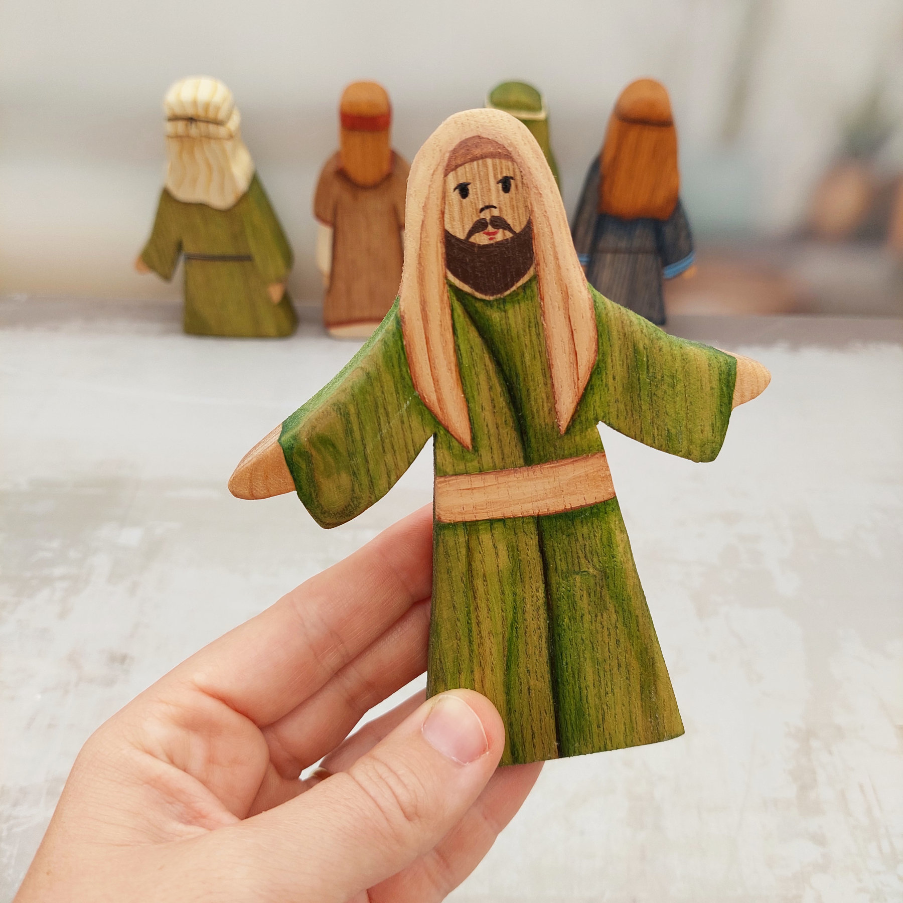 Perfect for teaching the Bible and inspiring meaningful play, these wooden figures help children connect with the foundations of their faith. Each apostle is carefully detailed with unique features and clothing, making them ideal for storytelling and religious education.