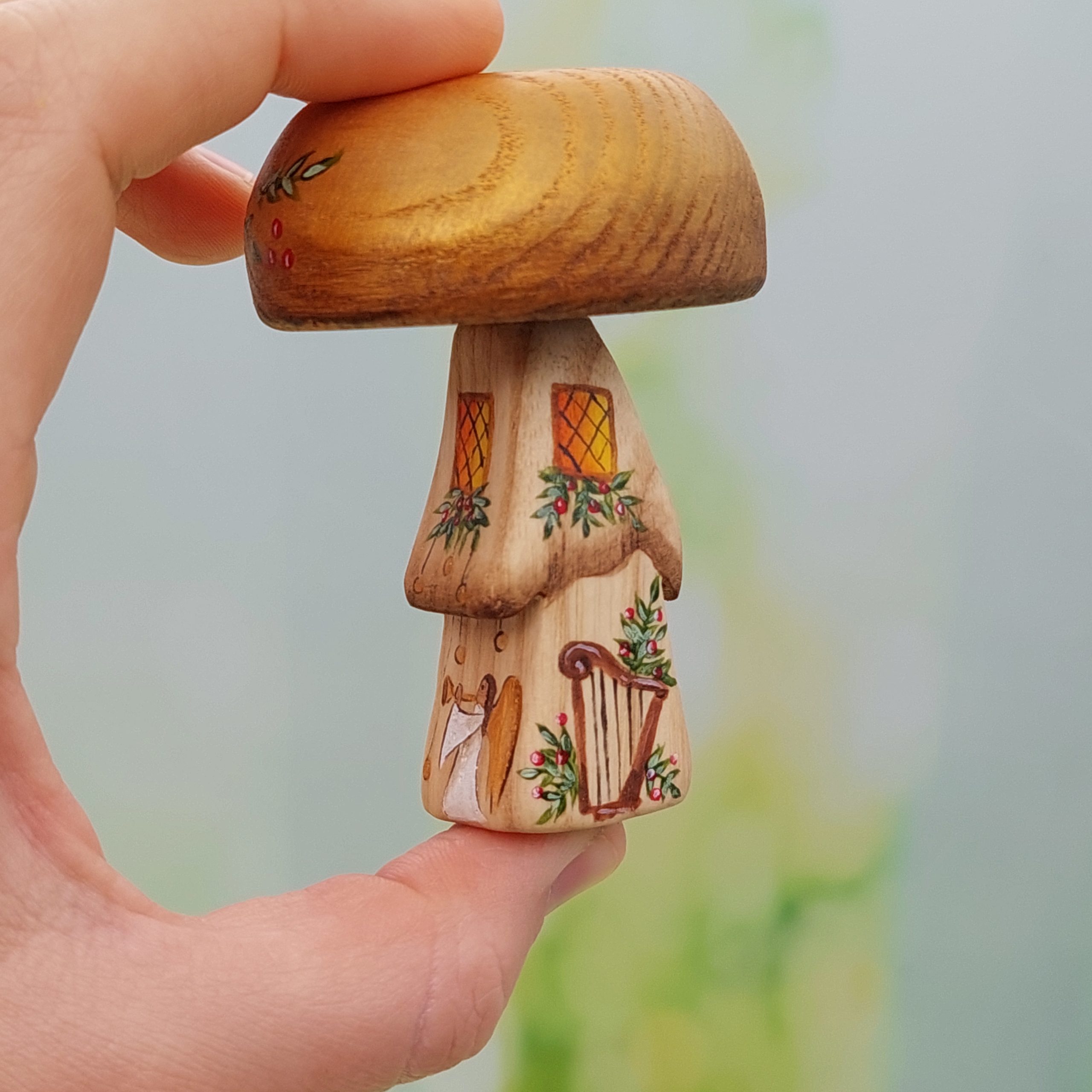 Crafted from solid ash hardwood. The golden angel mushroom stands 7.5cm high and is 5cm wide.