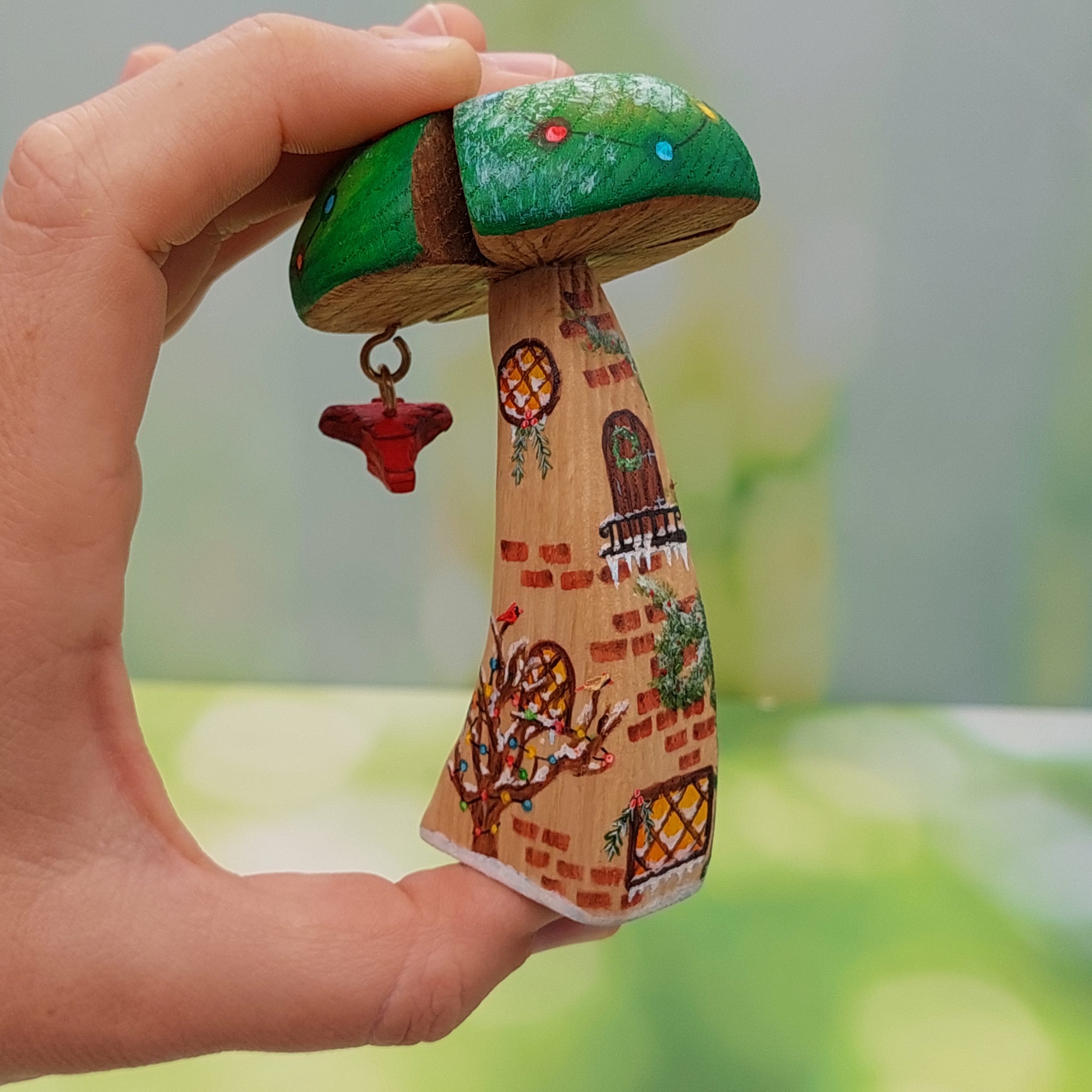 Christmas Hanging Cardinal Mushroom House / One-of-a-kind