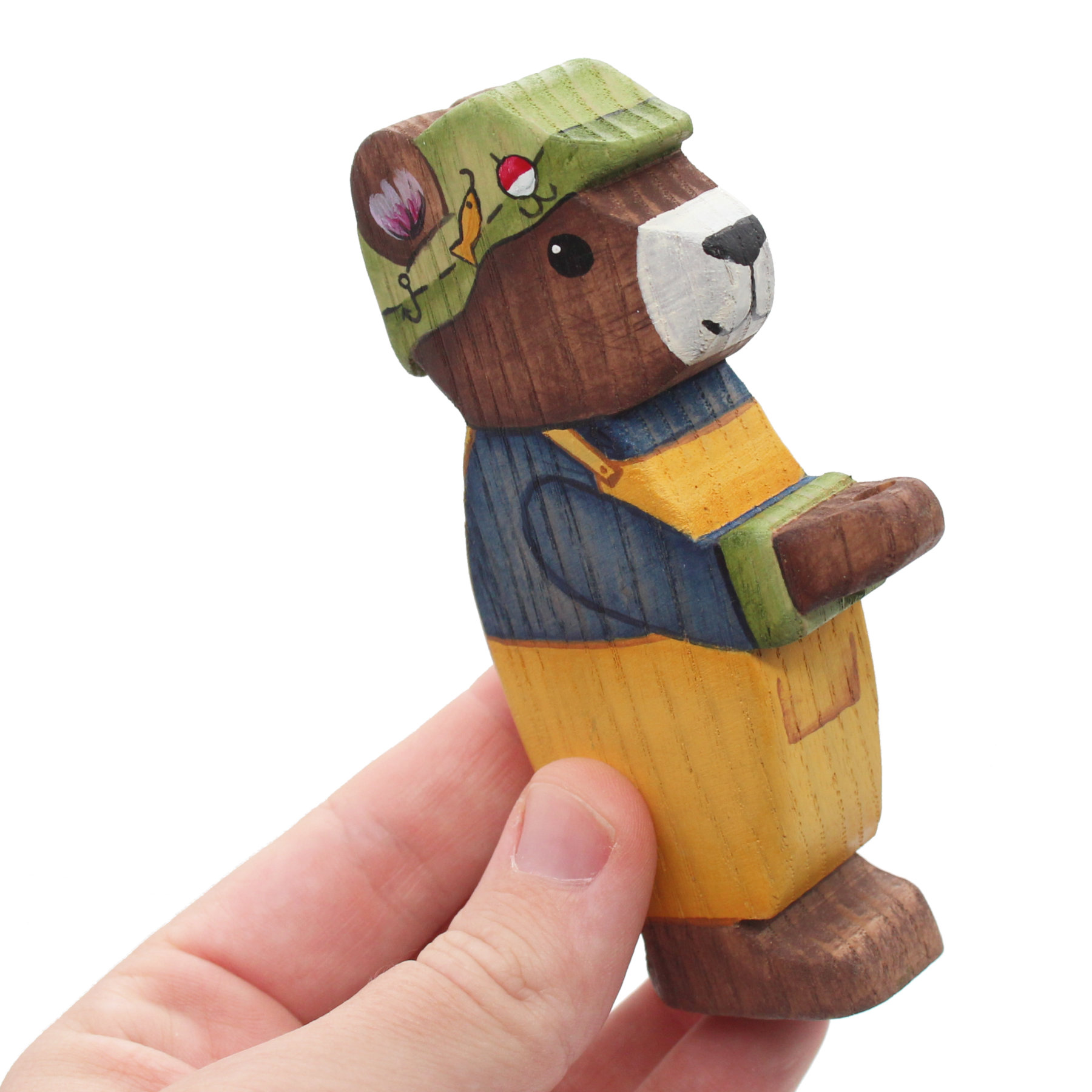 Wooden Fisherman Bear with Rod / Forest Folk Figure