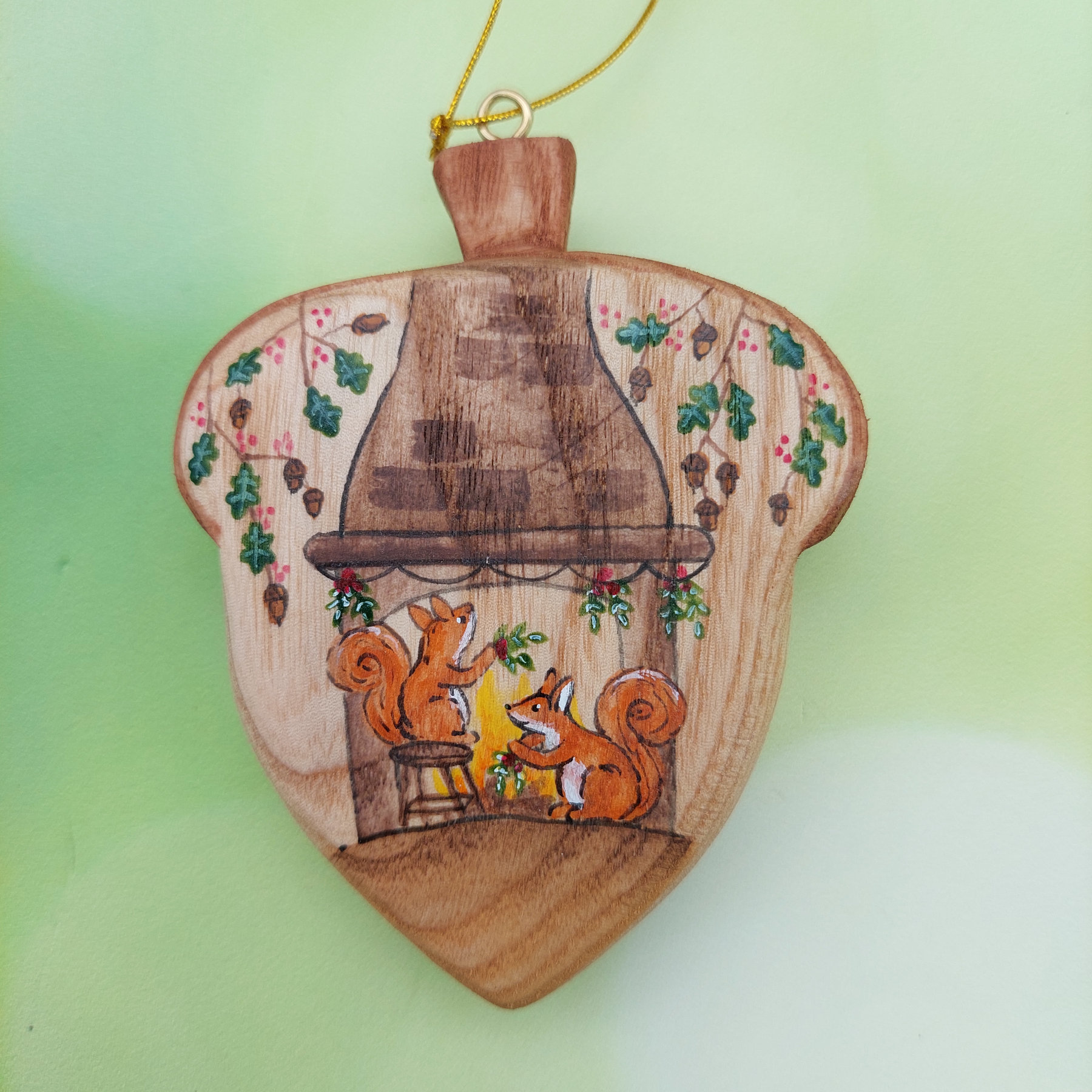 Hanging Acorn – Two Squirrels / One-of-a-kind