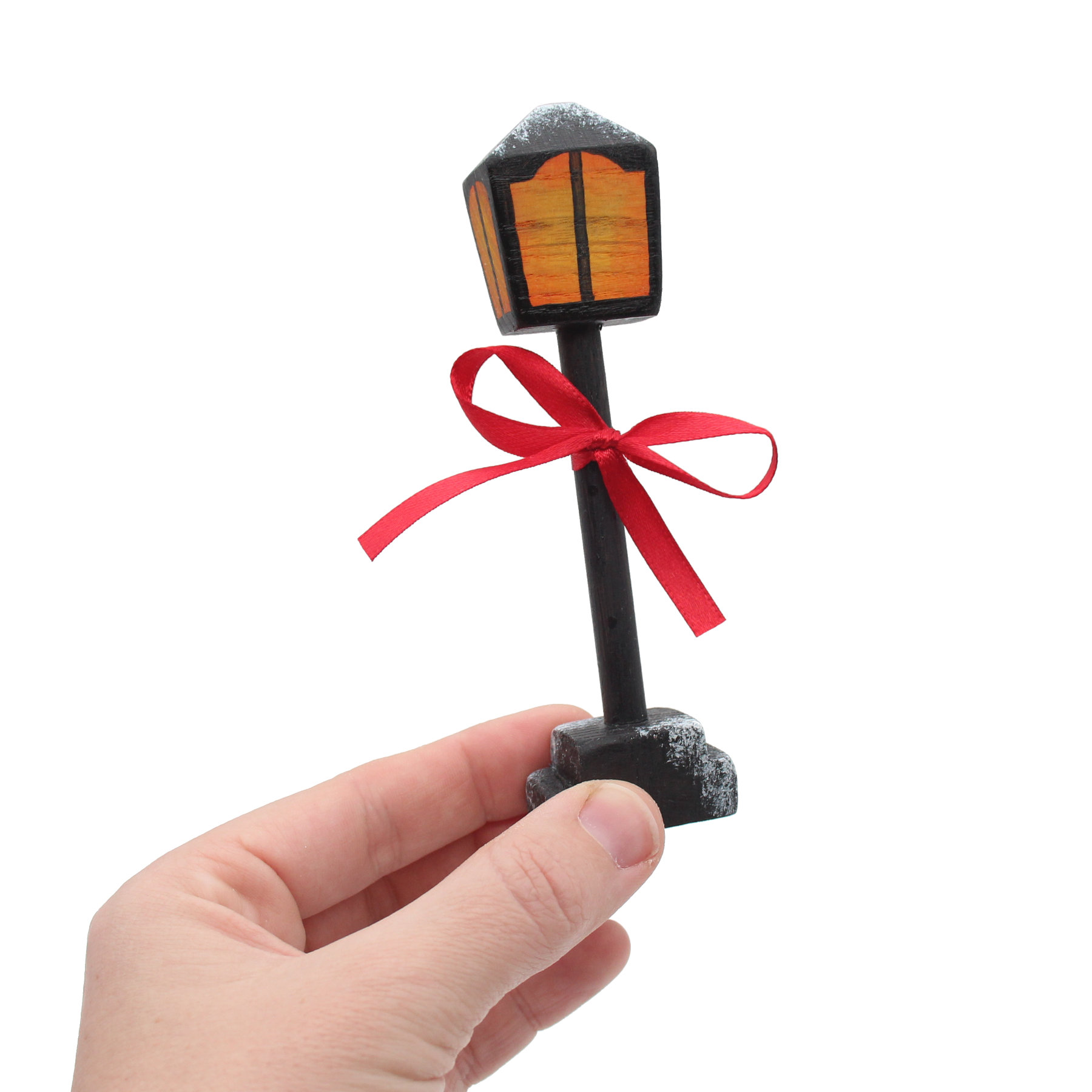 Decorated with a bright red bow, it makes a perfect addition to Christmas village scenes, nativity displays, or holiday decor. Crafted with care and full of seasonal charm.