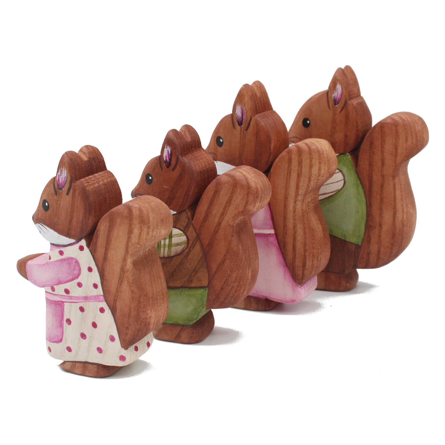 Wooden Squirrel Family Set / 4 Figures